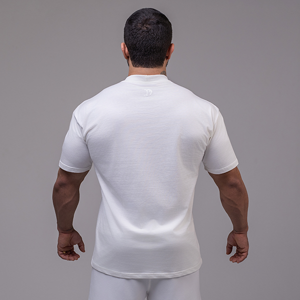 Confeccionada em malha 100% algodão, oferece gramatura alta, toque encorpado e caimento estruturado que valoriza o shape masculino.