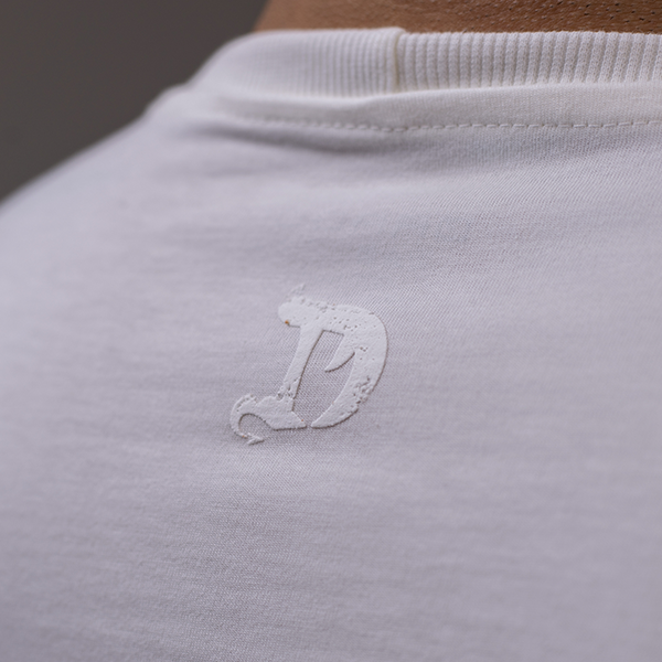 O silk branco em relevo no peito reforça a identidade minimalista e sofisticada da Dragon Pharma.