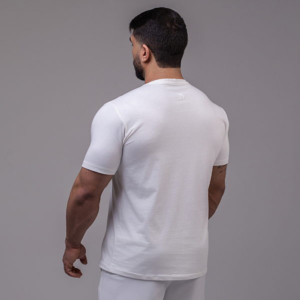 Com modelagem regular e silk branco em relevo no peito, a peça equilibra estilo e versatilidade, ideal para treinos, saídas casuais ou composições minimalistas.